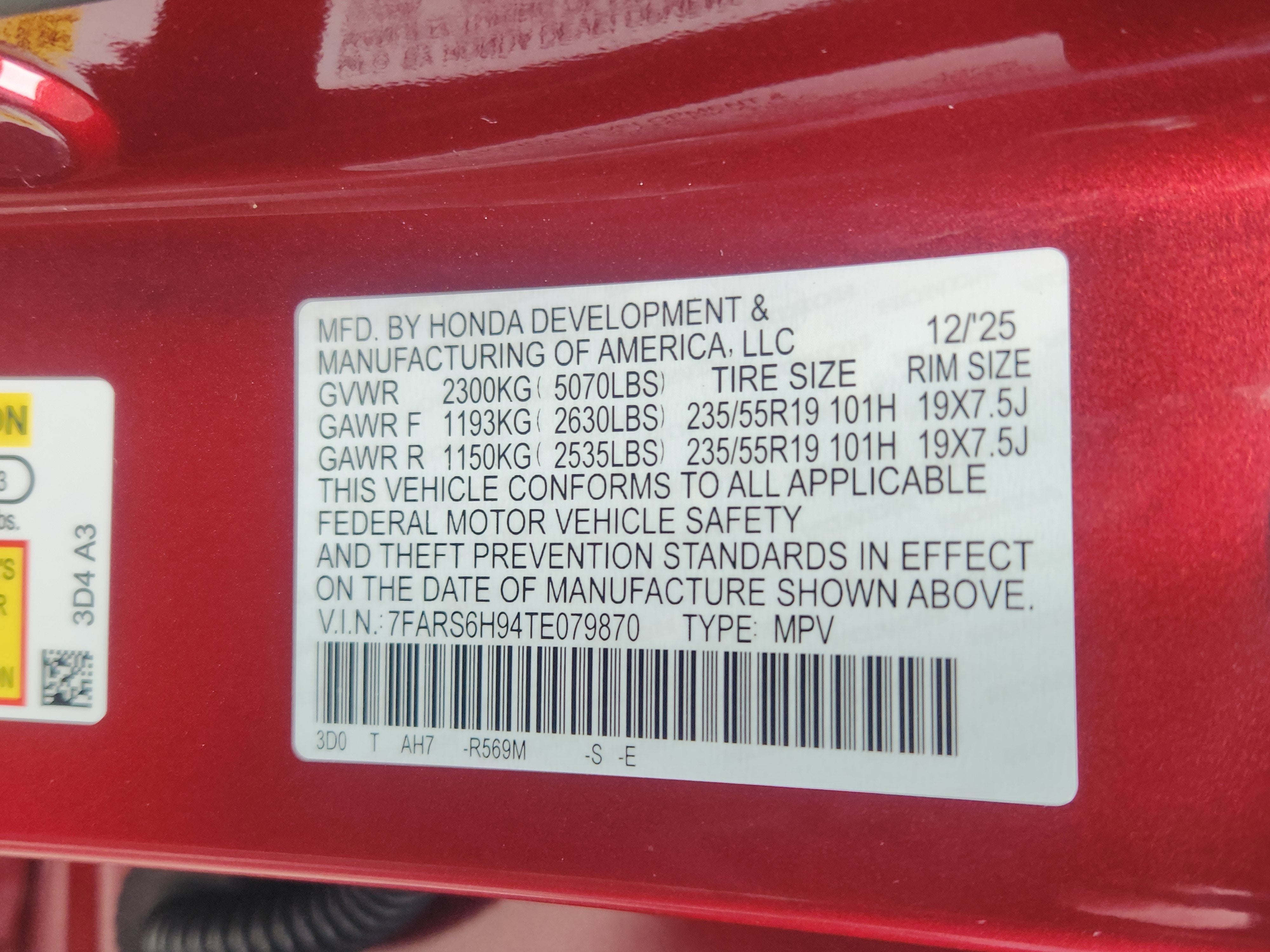 - Tires: 235/55R19 101H All-Season